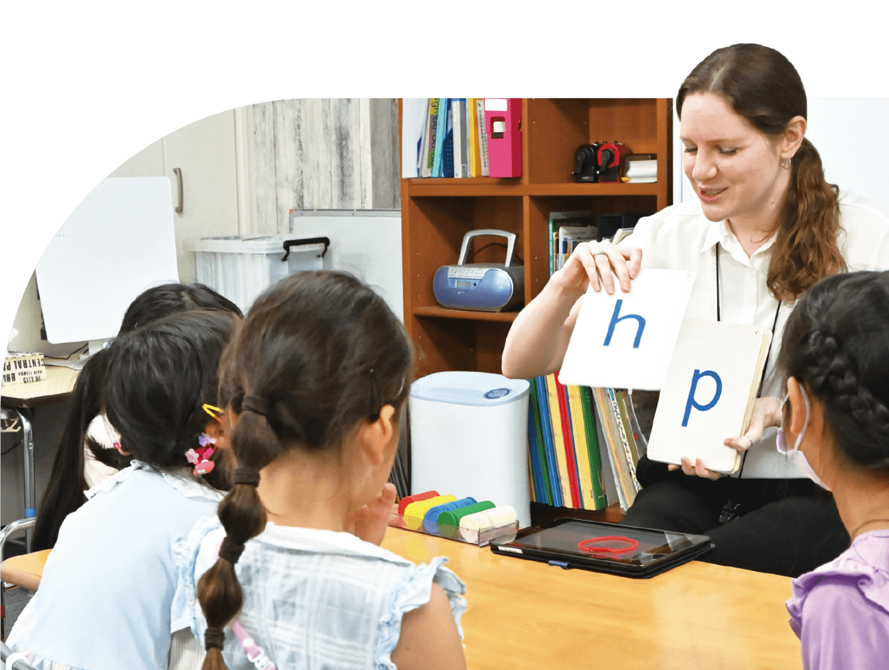 子どもを飽きさせないスピード・テンポ・バラエティに特化したアクティビティ中心のレッスンです。楽しく英語を学べるようにグループレッスンでも一人ひとりの進度に合わせて進めていきます。