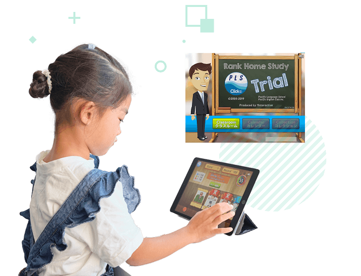 家庭学習デジタルアプリ「PLS Click」で、自宅でもゲーム感覚で英語学習を行うことができます。反復学習でより効果的に「使える英語」を身につけましょう。